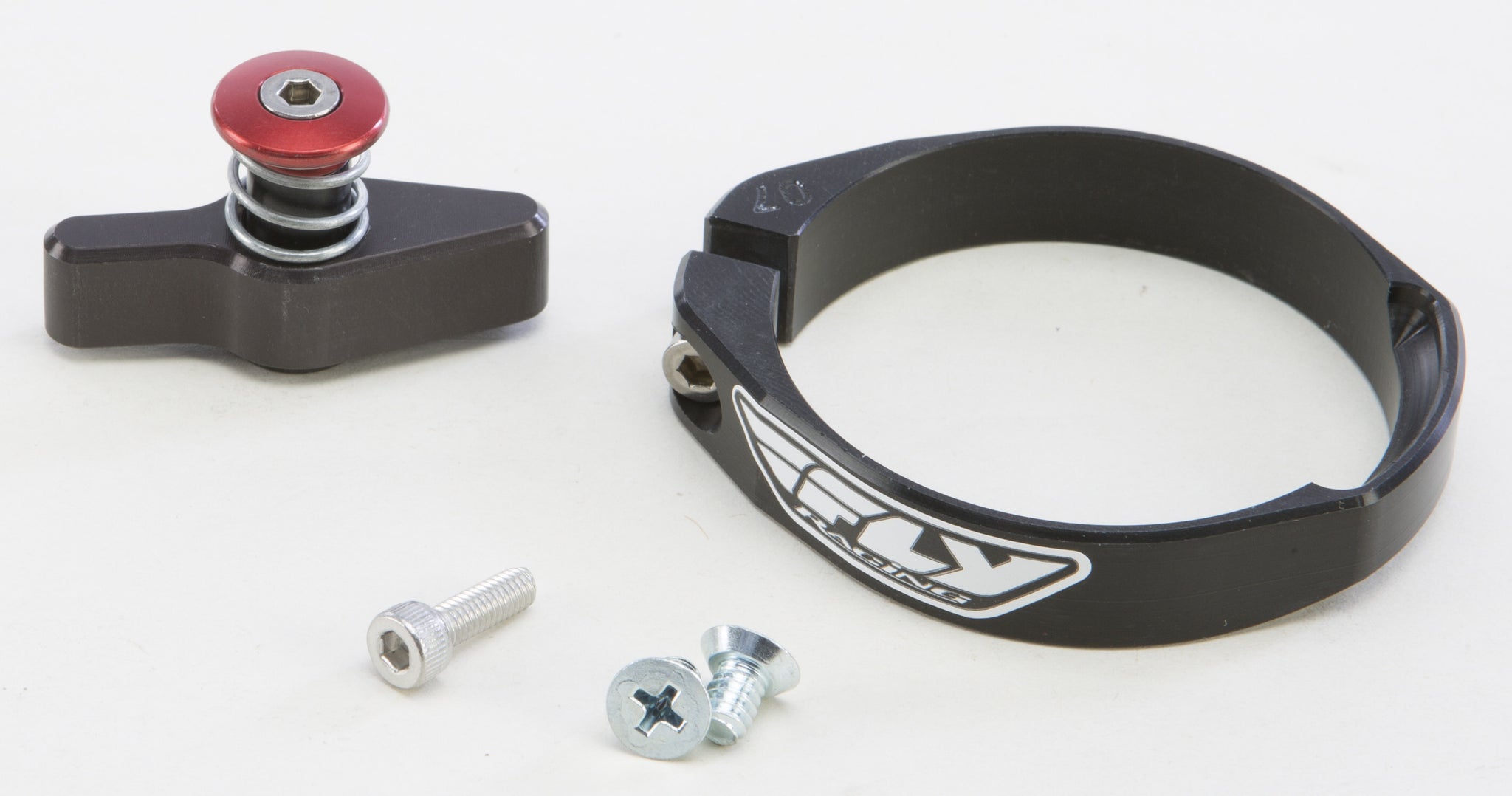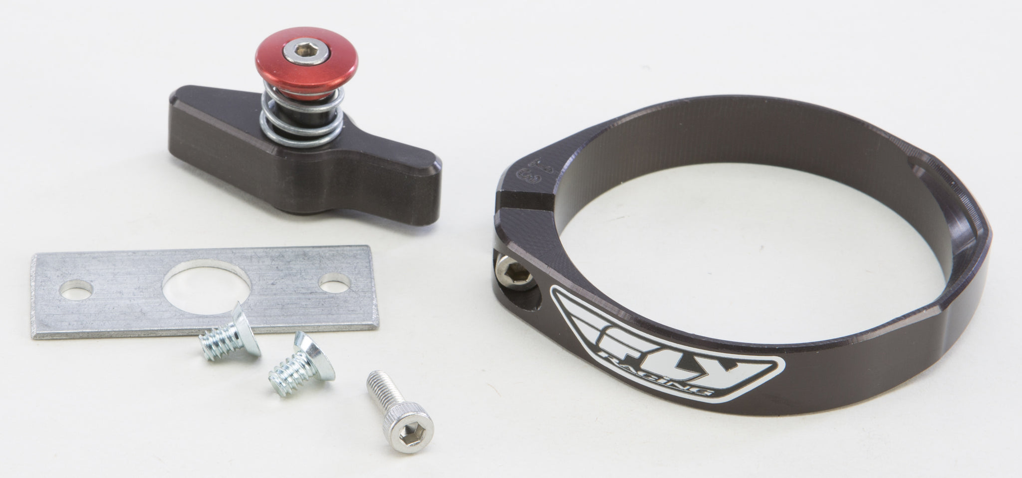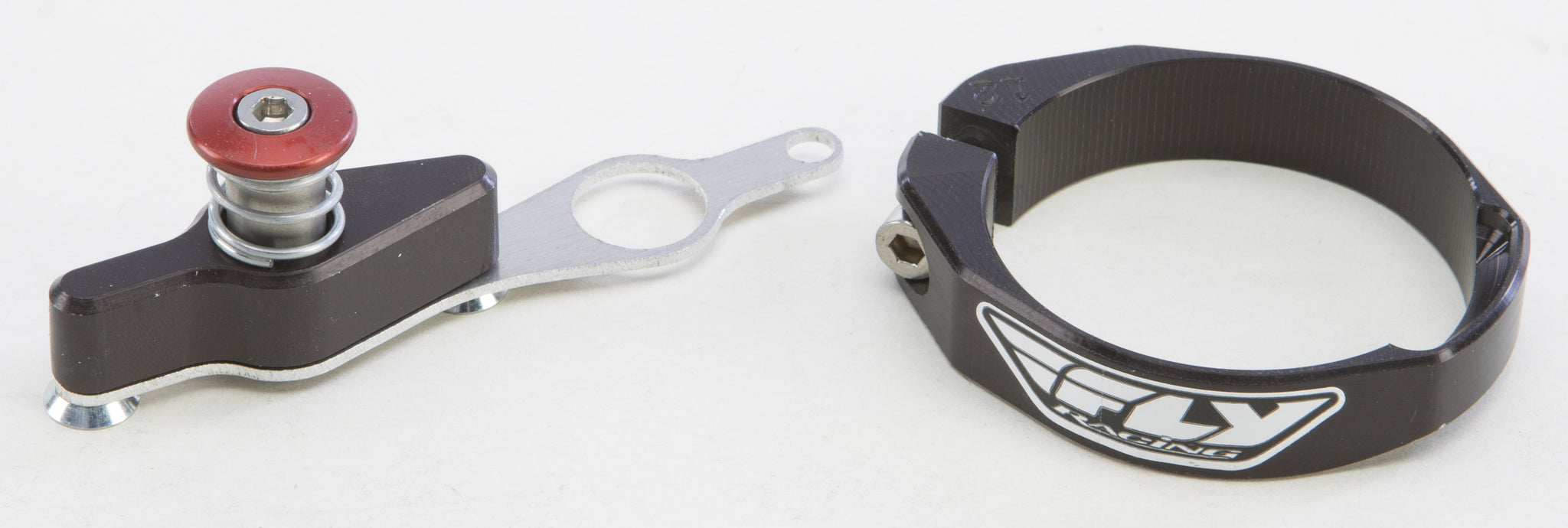 Our single button Fly Racing Holeshot Device offers better mounting to the plastic fork guard with everyday common tools. The elongated groove is flawless in all types of conditions including mud. No aiming and hoping the pin locks into the ring like the competitor's systems, just compress the forks push the pin and it is locked in. Your Holeshot is waiting for you!